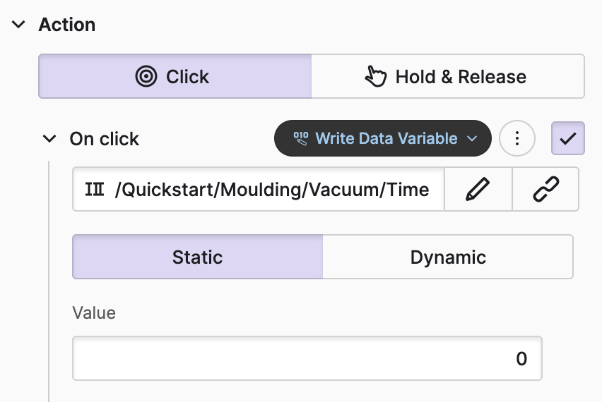 After editing the "Time" Data Variable our operators may need to reset the variable, we will achieve this by adding a button to the parameter.