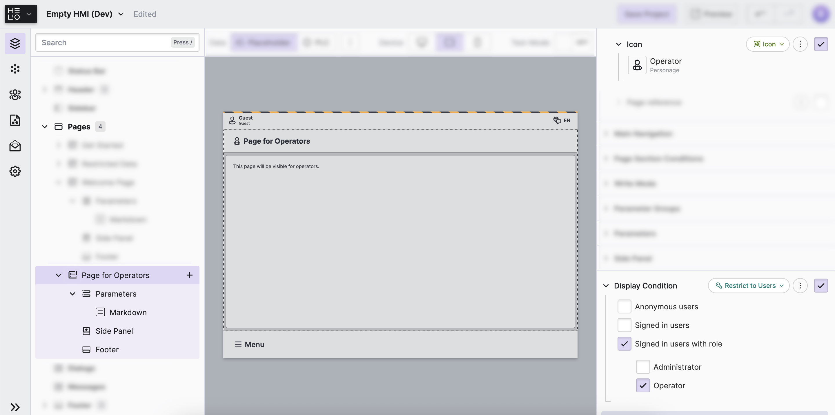 You've learned how to Restrict Access to Data. However, controlling access is not only about data, but also about pages and sections of your HMI. Now, let's explore how we can use roles to show or hide entire pages in your HMI.