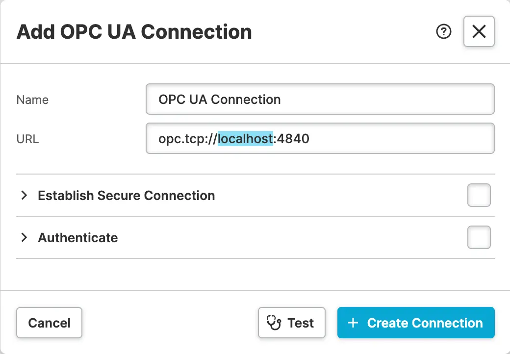 In the Data Source Explorer, add a new OPC UA Connection.