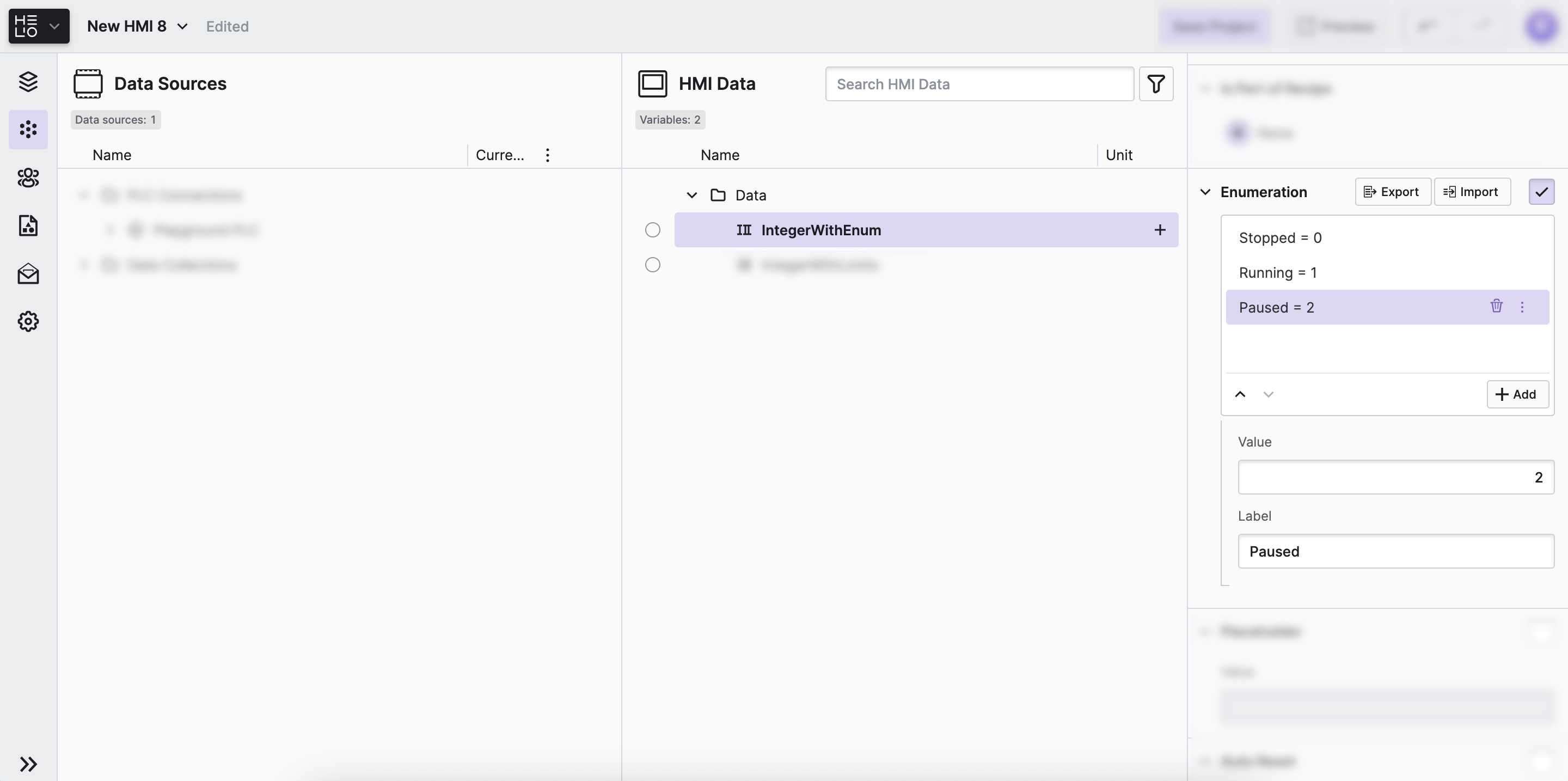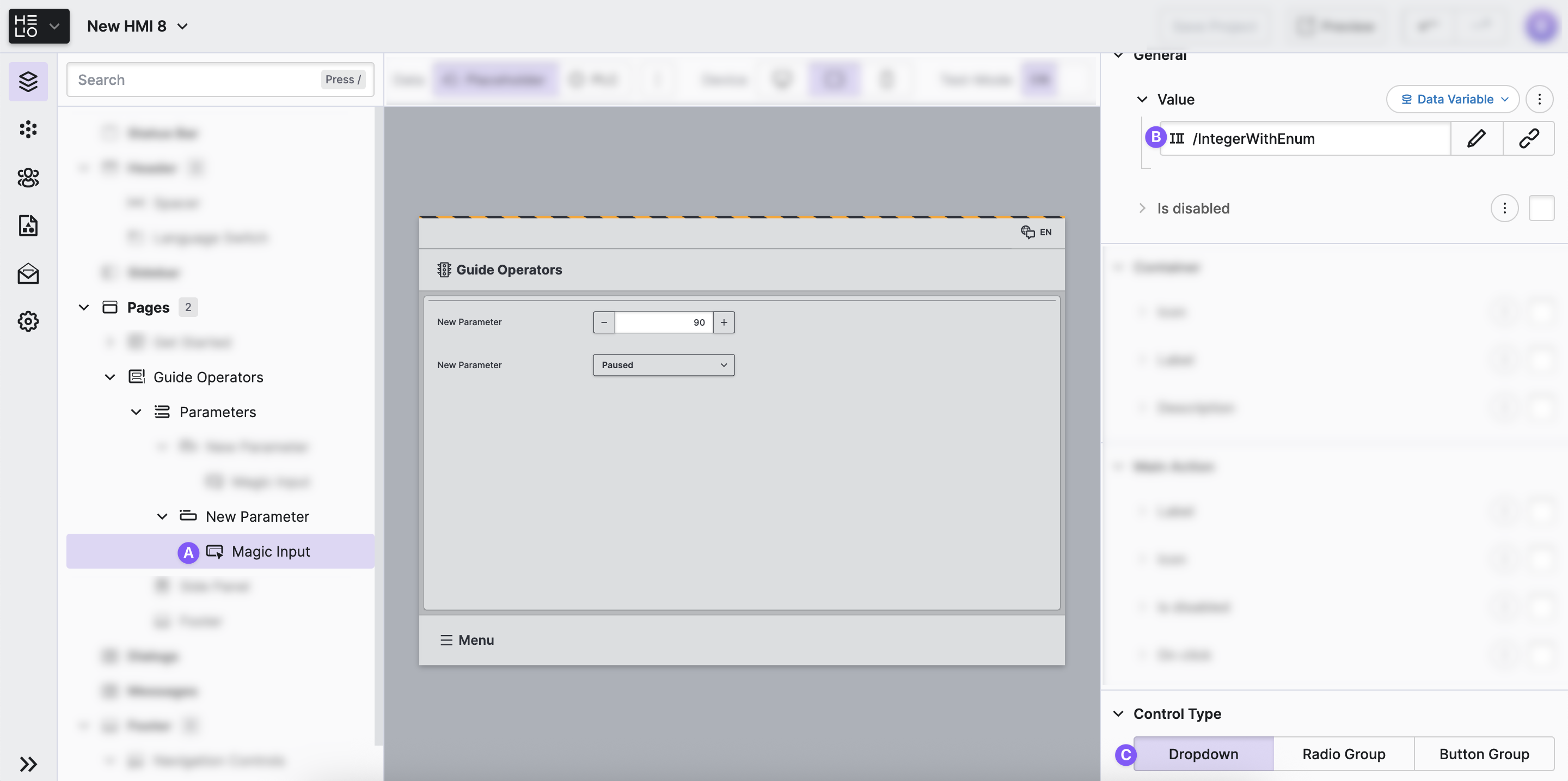 Another way to guide operators is to let them choose between distinct options. In HELIO this is done using Enumerations.
