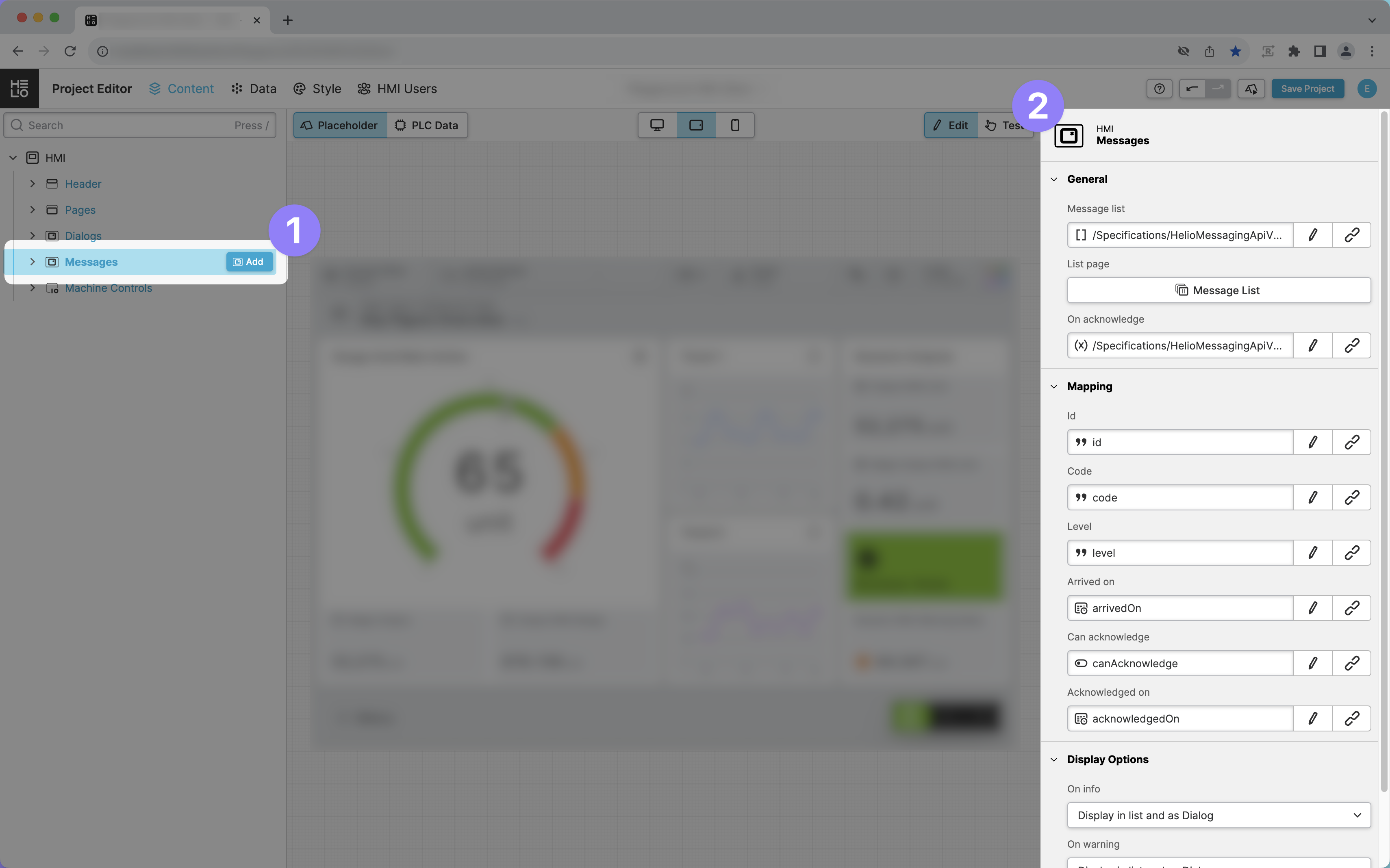 MessageListandAcknowledgeMessageinto your HMI Data Explorer. - Convert the