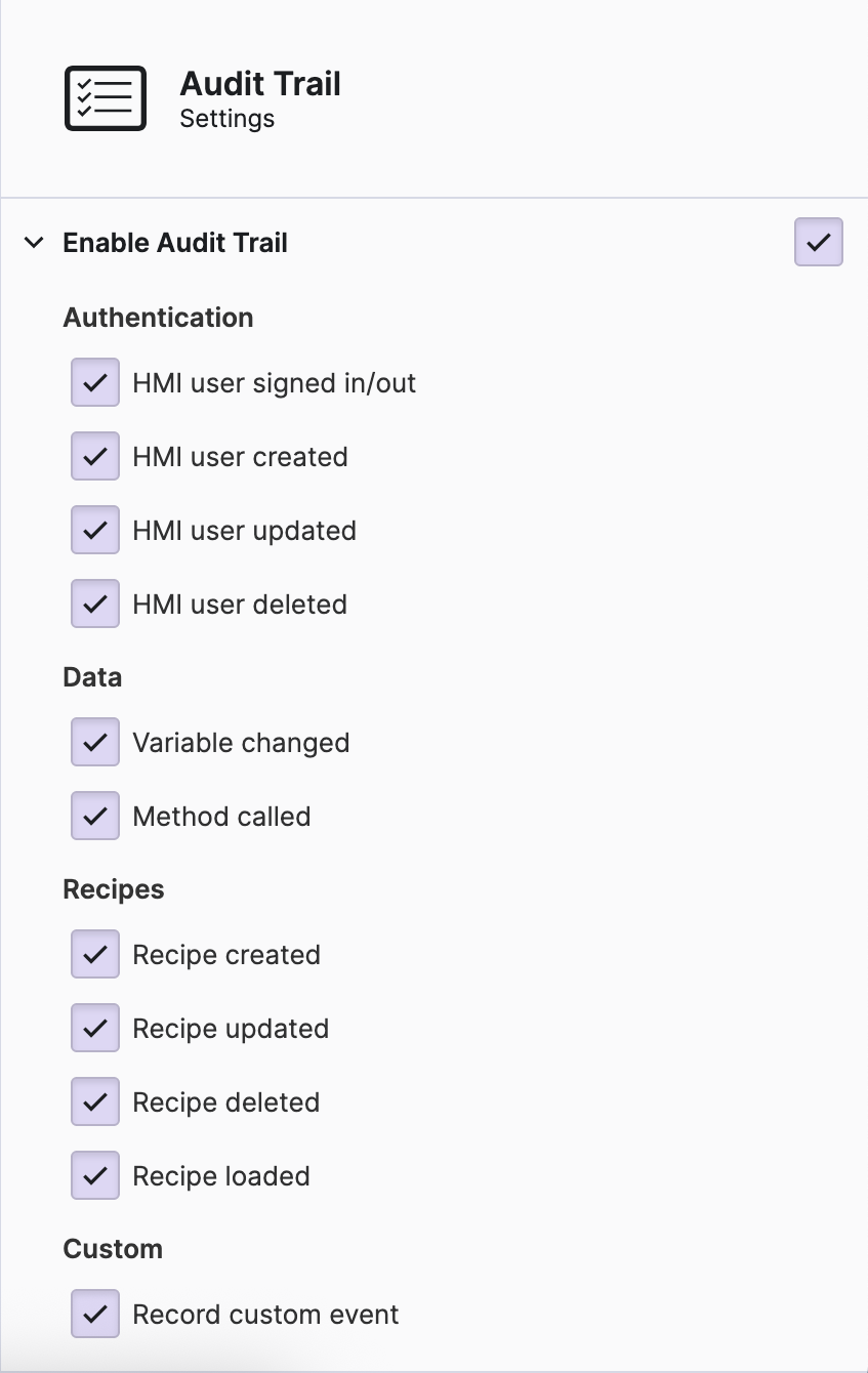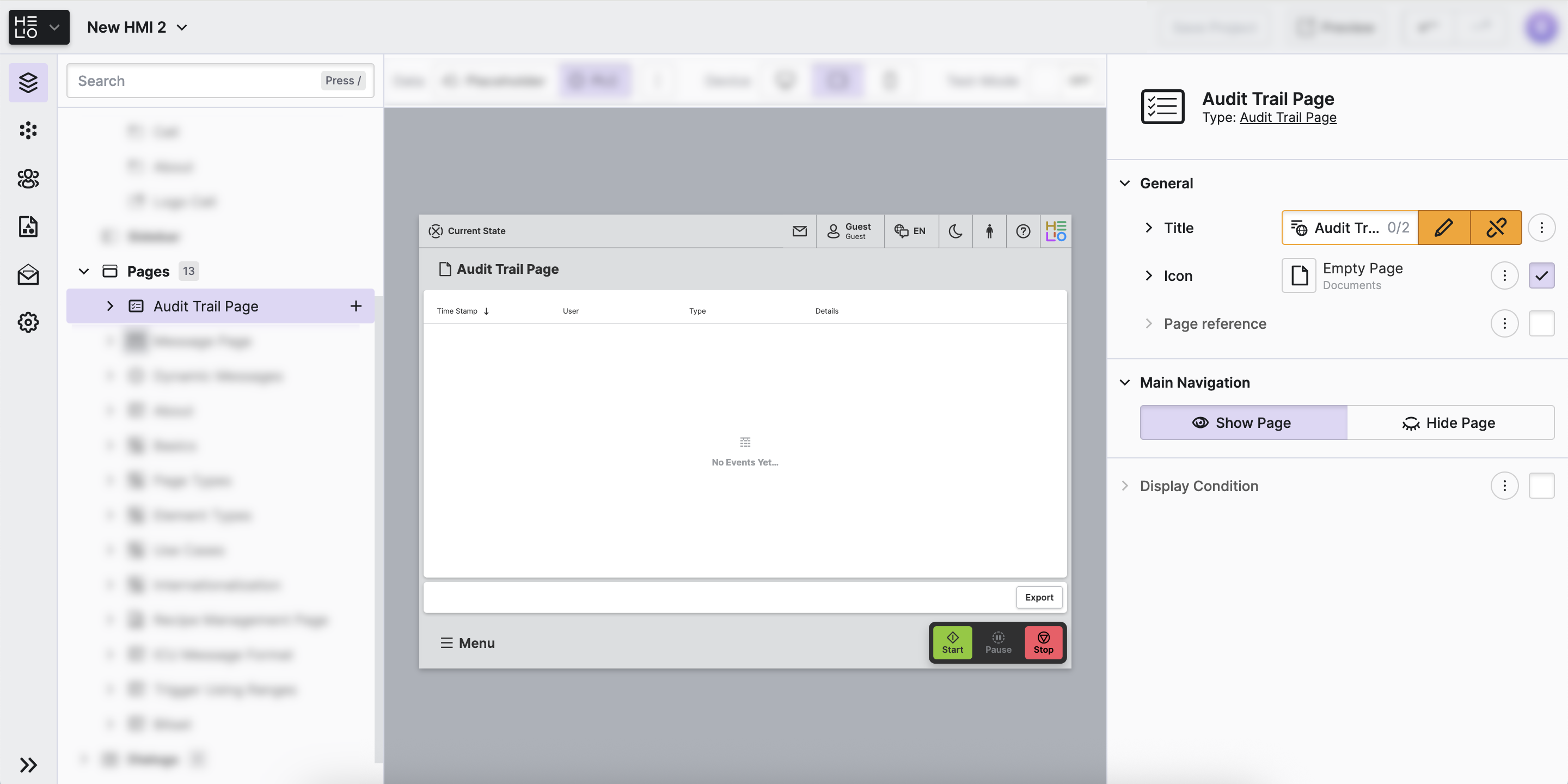 Finally, we want to ensure that our operators have access to view the audit trail within the HMI. In HELIO, there is a designated page that achieves this objective.
