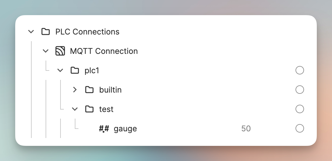 Example 1 (Topic plc/plc1/variable/meta/test/gauge):