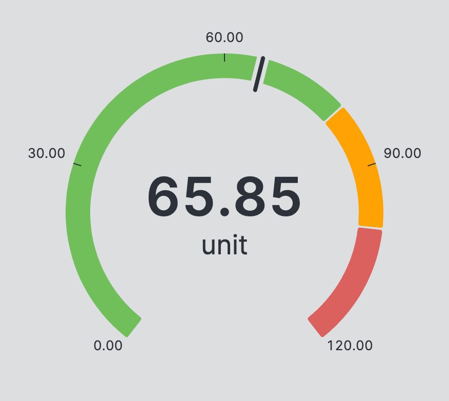 A Gauge is used to display values that change frequently and is visualized as a dial. It also alerts operators about critical ranges that the value may fall into.