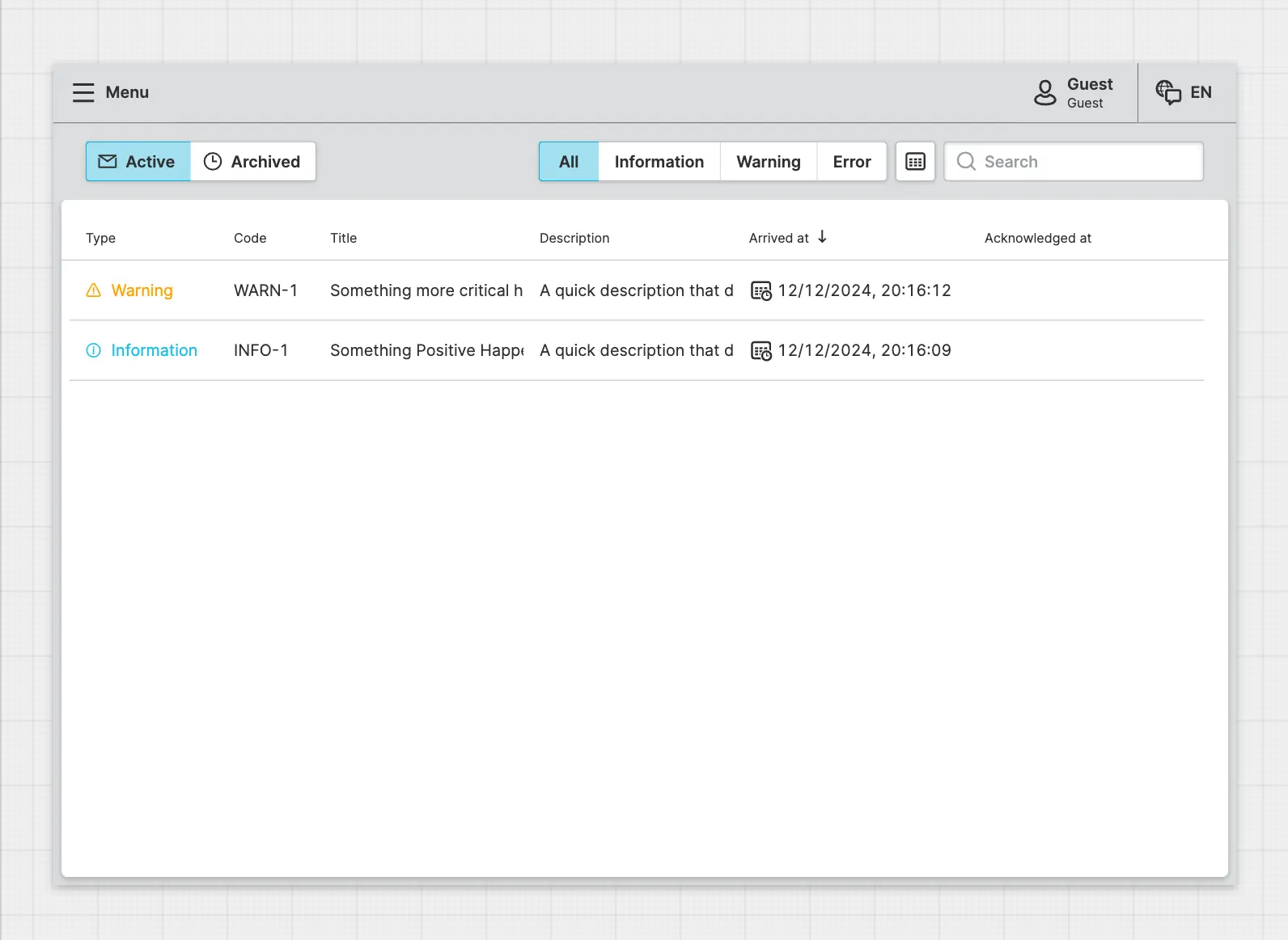 A Message Page lists active and archived messages and allows operators to view the details of each message.