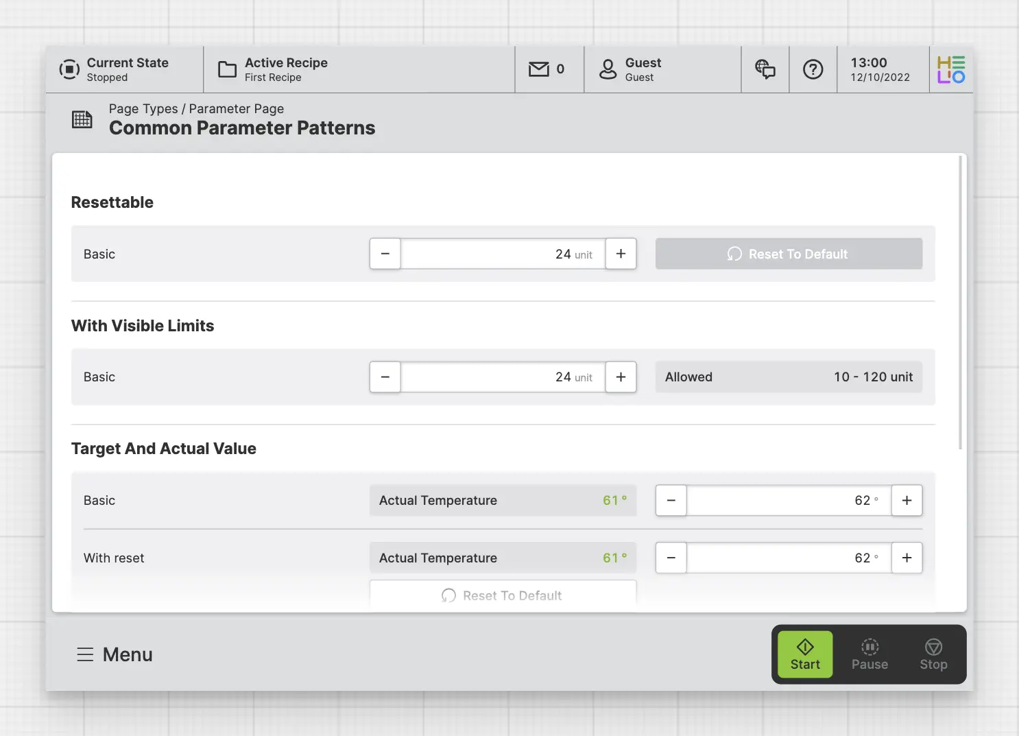 A Parameter Page allows operators to adjust and change machine parameters. It is especially useful when dealing with a large number of parameters, offering structure and guidance.