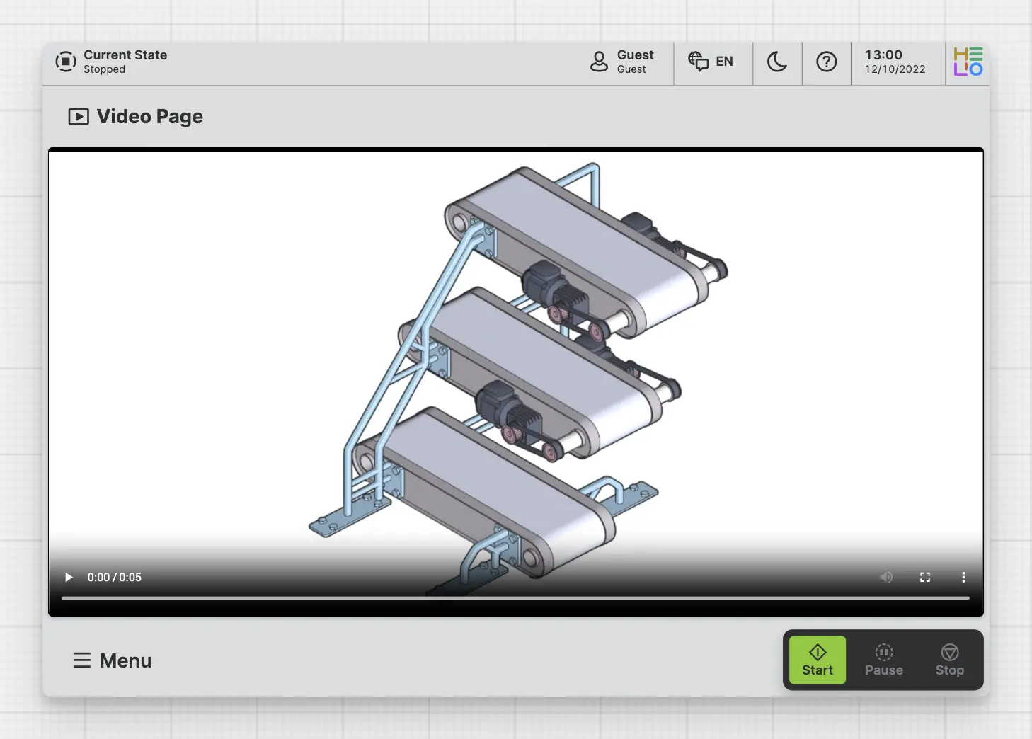A Video Page lets operators watch videos inside your HMI. For example, to see what faults look like or to find possible solutions.