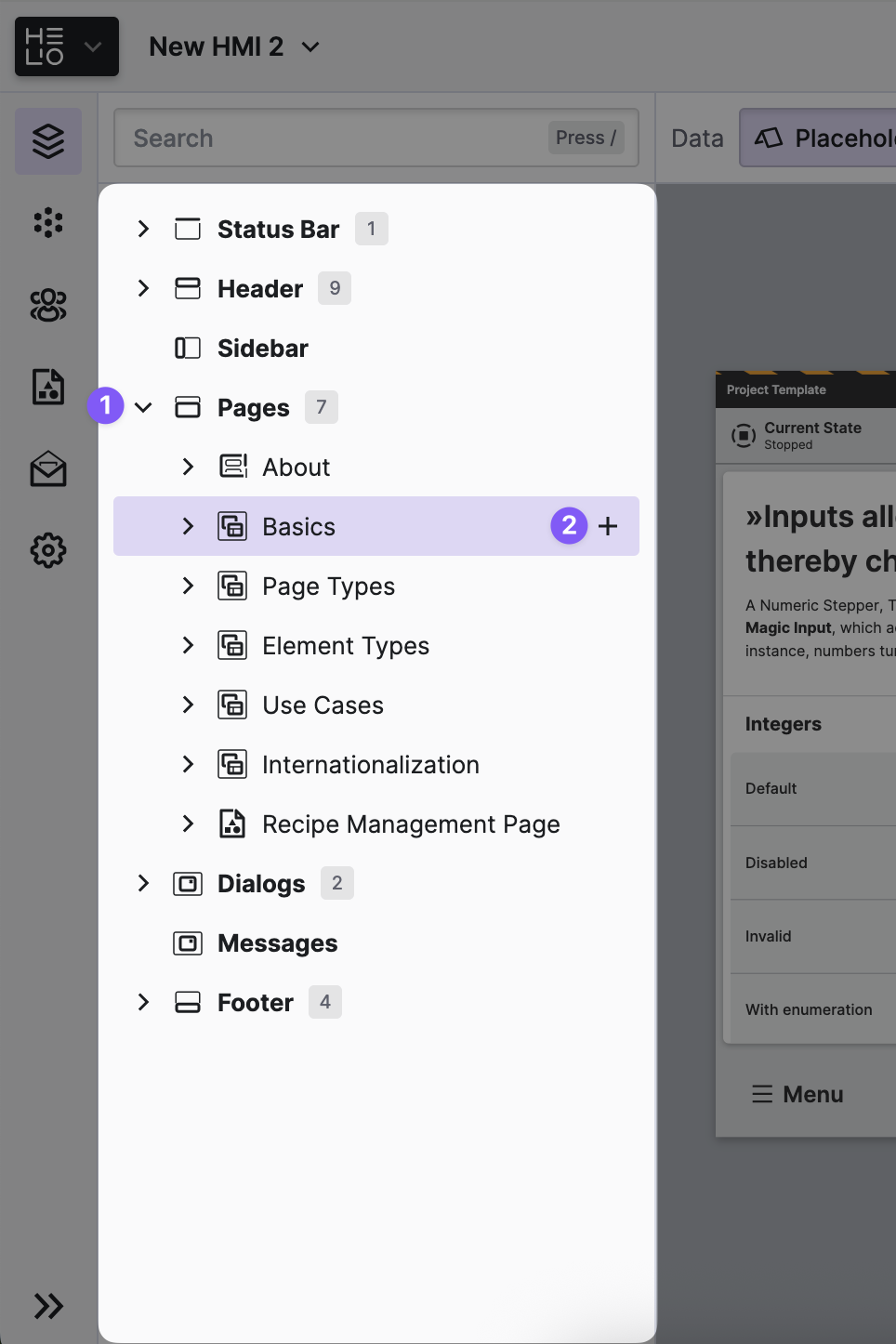 Add new pages to this Pages Slot and they will automatically appear in the navigation of your HMI.